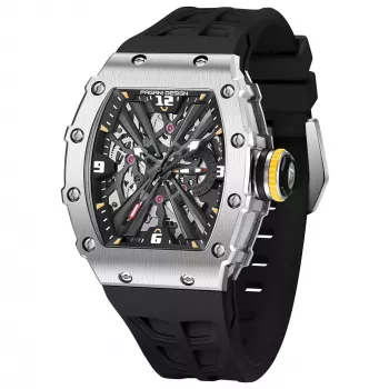 Skeleton Quartz Watch for Men with Sapphire Glass and Sport Silicone Strap